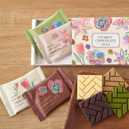 チョコレートの純益は世界18の国と地域で実施する支援活動に活用されます。