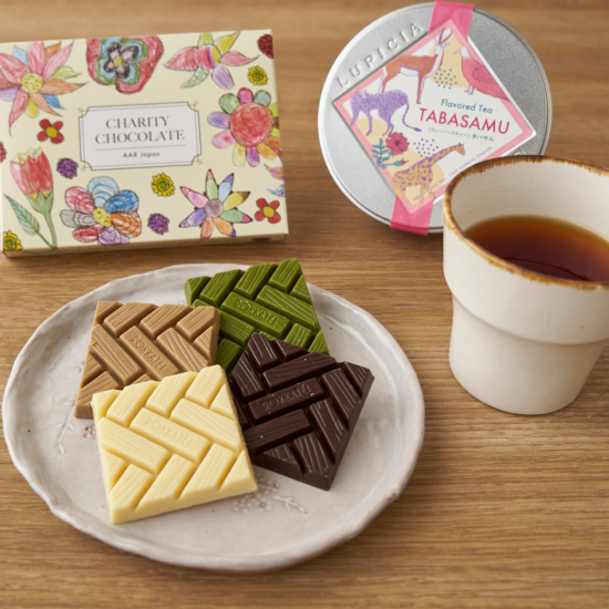 1箱で4つの味が楽しめると大好評のAARのチャリティチョコレート。